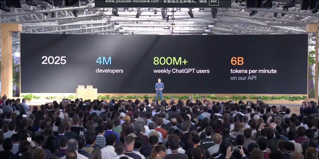 蓝鲸新闻10月7日讯(记者 武静静)2025年10月6日,OpenAI在旧金山举行其第三届 DevDay 年度大会。宣布了四大重磅的更新,同时公布了关键的一些产品数据值得关注。