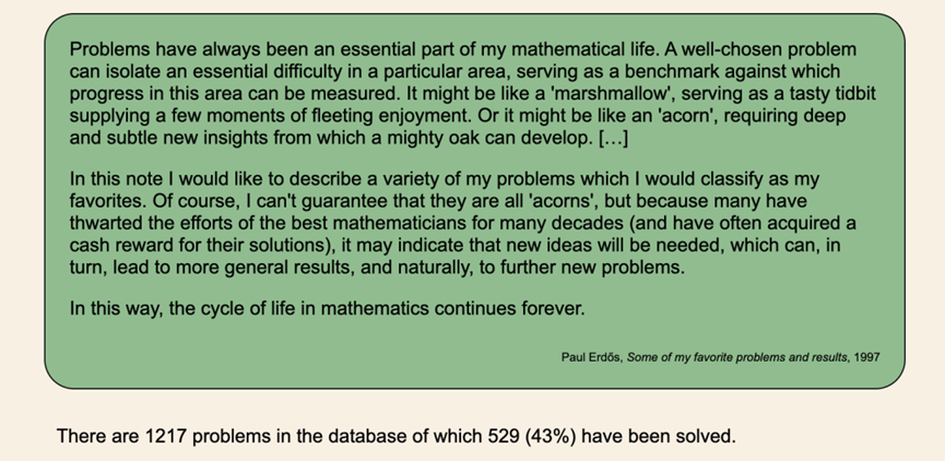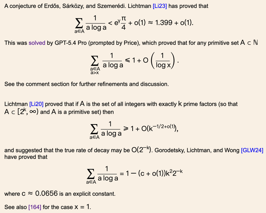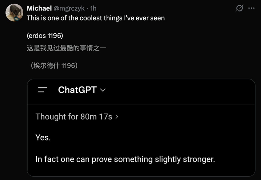 然后他说了一句让整个圈子安静下来的话:「这是第一个达到埃尔德什之书水平的AI数学成果。」