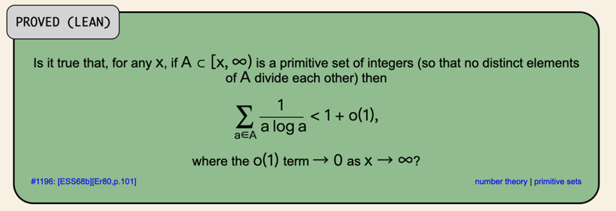 这次他们盯上的Erdős Problem #1196,关于「primitive sets」:一个集合里任意两个元素互不整除。